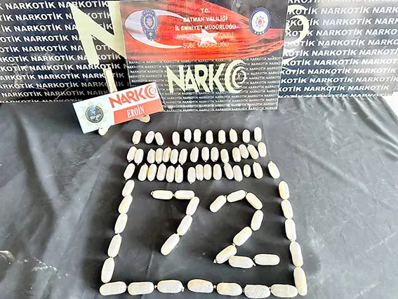 Operasyonda; otobüs ile seyahat eden 2 İran uyruklu şahsın yapılan kontrollerinde ve iç beden muayenesi sonucunda, şahıslardan birinin midesinde 76 paket halinde, 714 gram eroin maddesi ele geçirildiği belirtildi.