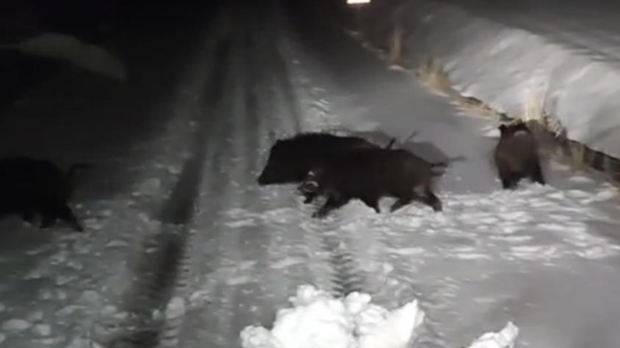 Diyarbakır’da çetin kış şartlarının yaşandığı Çermik ve Çüngüş ilçelerinde yaban hayvanları doğal yaşam alanlarında yiyecek bulmakta zorlanıyor. Karla kaplanan ilçelerde kurt ve domuz sürüsü yiyecek bulmak için yerleşim yerlerine kadar indi. Yaban hayvanları, cep telefonu kamerası ile görüntülendi.