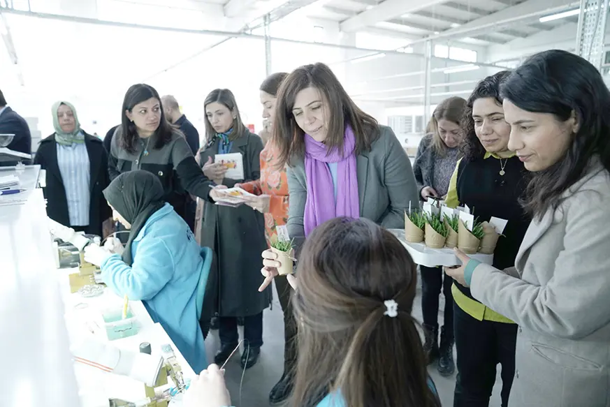 Büyükşehir Belediyesi Eş Başkanı Serra Bucak ve Yenişehir Belediyesi Eş Başkanı Safiye Akdağ, 8 Mart Dünya Emekçi Kadınlar Günü etkinlikleri kapsamında Organize Sanayi Bölgesi (OSB) içerisinde yer alan fabrikalarda çalışan kadınlara dayanışma ziyaretinde bulundu. Eş Başkanlar, OSB girişinde yönetim kurulu üyeleri tarafından karşılandıktan sonra OSB Mesleki Eğitim Merkezi İrtibat Bürosu'nda yönetim kurulu üyeleri ile bir araya geldi.