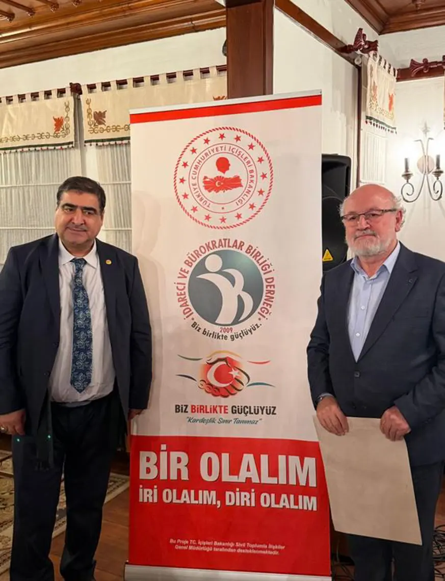 Bürokratlar Birliği Derneği Başkanı Sayın Yücel Can; her ne kadar 2009 yılında kurulmuşsak da Yüce Yaratıcı Allah’ın kainatı yaratırken insanı kainatın halifesi olarak muhatap alarak her şeyi insanın emrine vererek insana hizmette adeta sınır tanınmayarak insanın en mükemmel bir varlık ve yaratılanların içerisinde en iyi idareci kabul ederek aynı zamanda insanın Allah’ın bir memuru ve kulu olmasını; en son Peygamber Hz. Muhammed sav Hılfıl Fudül Cemiyeti ile evrensel adım ile insana insan olduğu için değer vermek, insanı erdemli bir varlık kabul ederek herkese adaletin lazım olacağı anlayışı ecdadın Ahiler ve Loncalar Teşkilatı ile birleştiren bakış açısını logosunda olduğu gibi insan odaklı anlayışın kırmızı beyaz renk ile bayrak ile bütünleşen anlayışın insani, inanç, kültürel, ahlaki değerlerle bütünleşerek yarınların ötesinde şekilden öte bir anlayışın geride hoş bir sada, ölümsüz eser bırakarak; ahirete de insanı kurtaracak insana hizmetkar eserleri götürmek İdareci ve Bürokratlar Birliği Derneğinin farkındalığı ve kalıcılığıdır.