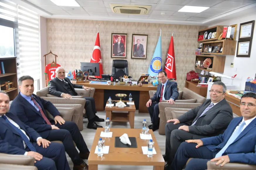 Ziyarette, İŞKUR İl Müdürü Mustafa Yılmaz, Rektör yardımcıları Prof. Dr. Aytaç Coşkun, Prof. Dr. Velat Şen, Prof. Dr. Mehmet Siraç Özerdem ve Genel Sekreter Doç. Dr. Mustafa Uğurlu Arslan da yer aldı.