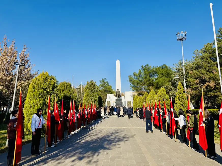 Diyarbakır'ın merkez Yenişehir ilçesindeki Anıt Park'ta düzenlenen törende, İl Milli Eğitim Müdürü Salih Sadoğlu, Atatürk Anıtı'na çelenk sundu, saygı duruşunda bulunuldu ve İstiklal Marşı okundu.