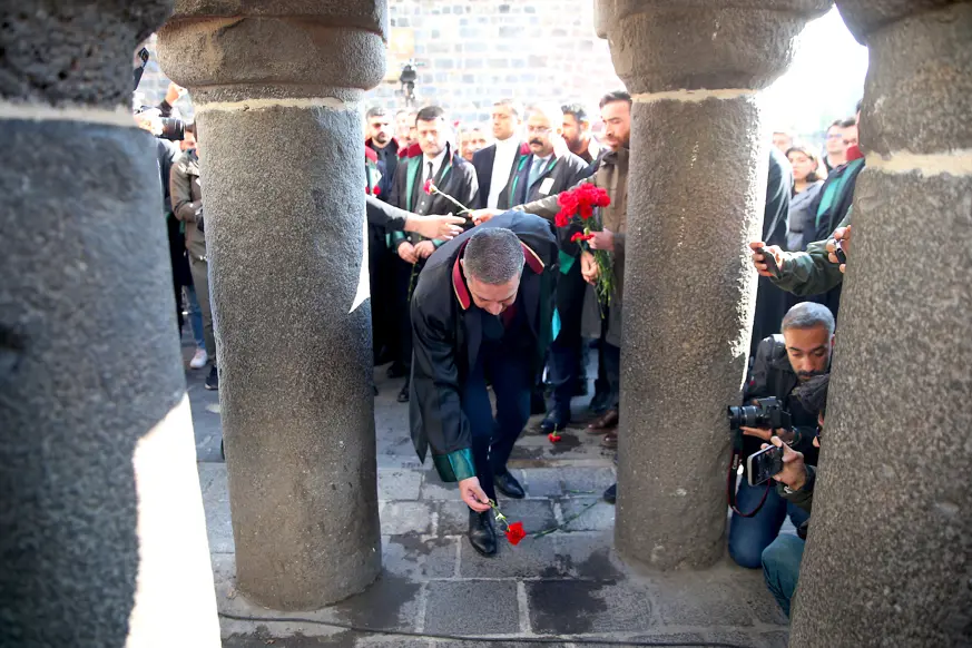 Diyarbakır Adliyesi önünde bir araya gelen, aralarında Türkiye Barolar Birliği (TBB) Başkanı Ramiz Erinç Sağkan ve Tahir Elçi'nin eşi Türkan Elçi ile avukatların yer aldığı grup, terör saldırısının gerçekleştirildiği Dört Ayaklı Minare'nin bulunduğu Av. Tahir Elçi Sokağı'na kadar yürüdü.