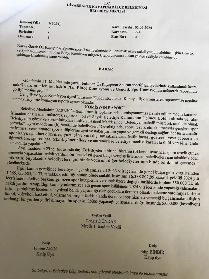 Mevut kulüp var iken sıfırdan yeni bir kulübün kurulmasındaki gayenin ne olduğu bilinmezken, Belediye Meclisinin ilçe sınırları içerisindeki amatör spor faaliyetlerine ayırdığı bütçenin ise 550 bin lira olarak, belirlenmesi, dikkat çekti. Yerel seçimler sonrasında kurulan Öz Kayapınar Belediyespor’un kulüp başkanlığının ise Belediye Meclis Üyesi Kıyasettin Kurt yürütüyor.