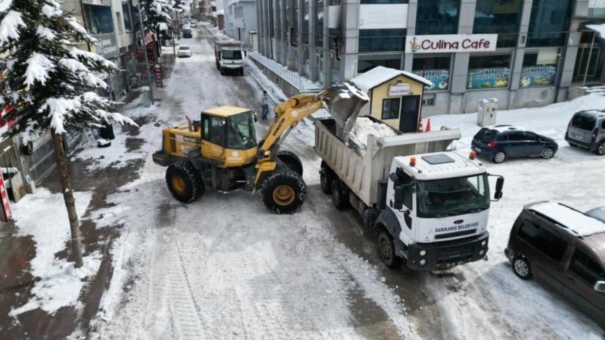 Kars’ın Sarıkamış ilçesinde Belediye Başkanlığı’na bağlı Temizlik İşleri Müdürlüğü’nce karla mücadele çalışmaları aralıksız devam ediyor. İlçe merkezinde hayatı olumsuz etkileyen kar kütleleri, belediye ekiplerince yürütülen hummalı çalışma ile şehir dışına naklediliyor.