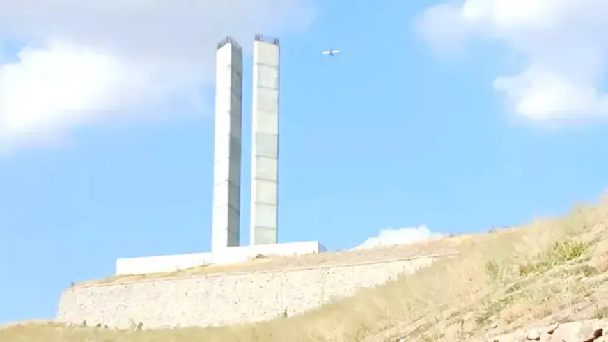 Çağlar ötesi bir eser!.. İki beton kulenin her biri 6 metre genişliğinde, 66.5 metre de yüksekliğe sahip!.. Bütünü beton.. Öyle Çin, Japon malı yok.. Hakiki, Ankara çimentosundan.. Kumu da yerli.. Yani yerli ve milli.? Zaten, bir sürü para verilmişti, heykel yarışına?..