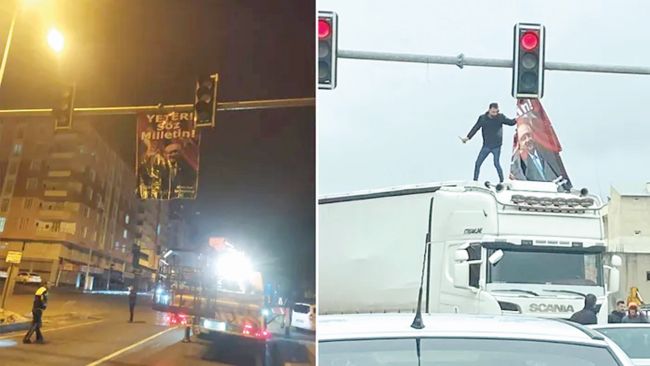 Afiş yanlış yere asılmış.. Trafik ışıklarına asıldığı için risk teşkil etmiş.. Buradan da indirilmiş.? İzin alınan yere asılmış.. Asan da, indiren de, uyarı yapan da bizatihi CHP’lilerin kendileri imiş!.. Kimsenin bir müdahalesi dahi olmamış… Polis hep güvenlik noktasında, gözeten olmuş!