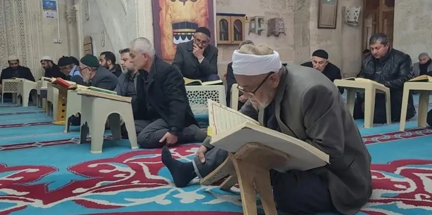 Ramazan ayında öğle namazı ve ikindi namazı ardından mukabeleye katılanlar, girişindeki kitabeye göre 1185'da inşa edilen camide Hazreti Muhammed´in sünnetine dayanan geleneğe ilgi gösteriyor. Vatandaşlar, din görevlilerinin Kur'an-ı Kerim tilavetini takip ediyor, bilmeyenler de okunan ayetleri dinliyor.