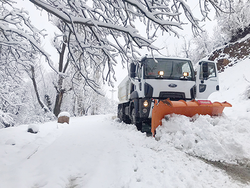 Kent merkezinde de yağışın ulaşımda aksamaya yol açmaması için belediye ekipleri kar temizleme çalışmalarını sürdürüyor.
