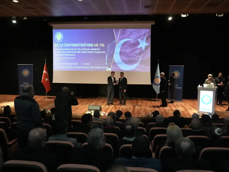 Müzik dinletisinin ardından Prof. Dr. Eronat ve DÜ Rektör yardımcıları Prof. Dr. Velat Şen, Prof. Dr. Aytaç Coşkun, Prof. Dr. Mehmet Siraç Özerdem ile Genel Sekreter Doç. Dr. Mustafa Uğurlu Arslan, 40 yılını geride bırakan personele plaketlerini takdim etti.