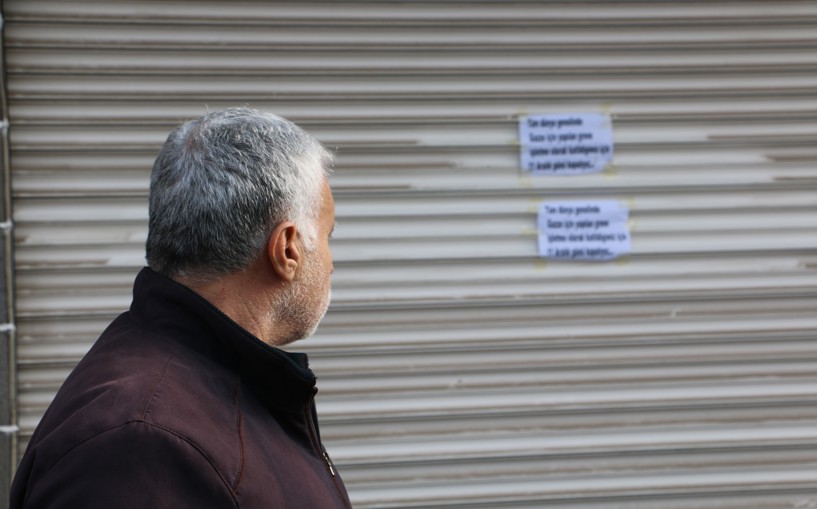 yazılı kağıdı kepenk üzerine asarak greve destek verdi.