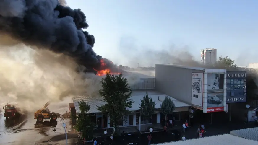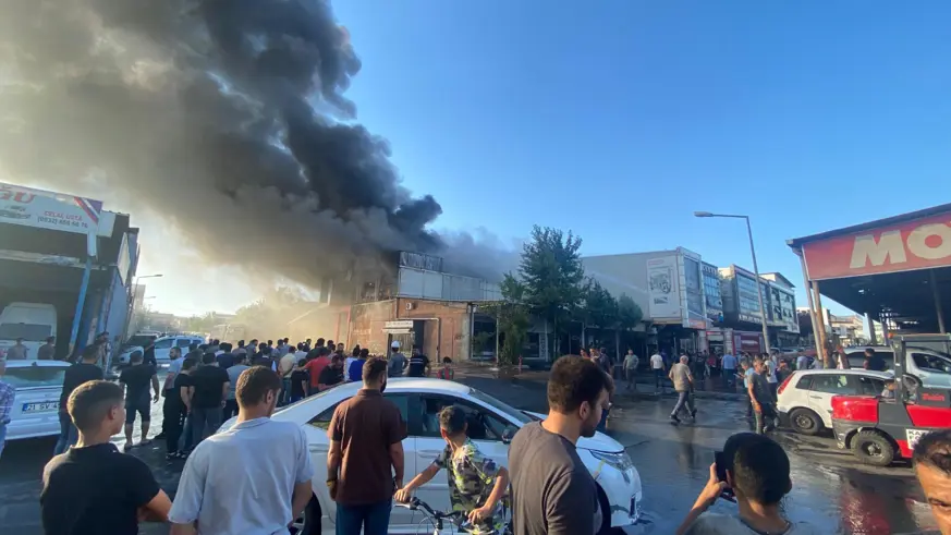 Diyarbakır'da 2. Sanayi Sitesi'ndeki 4 iş yerinde etkili olan yangına müdahale ediliyor.
