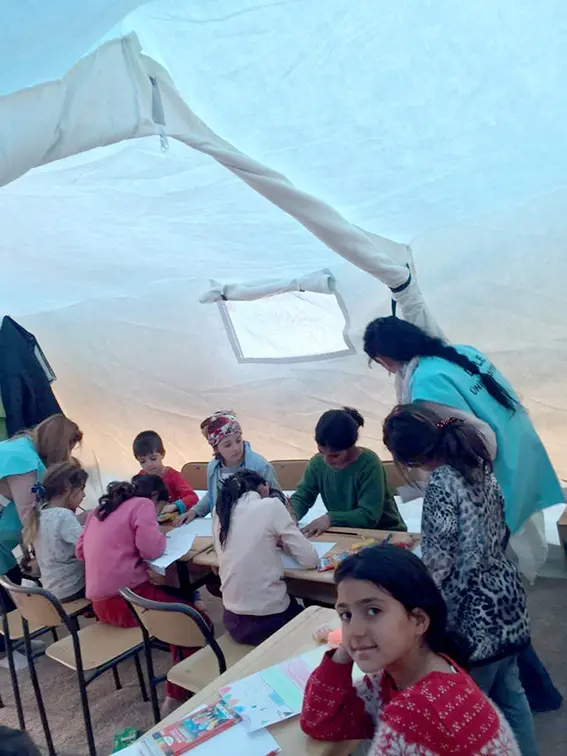 Kahramanmaraş merkezli depremlerden etkilenen 11 ilden biri olan Diyarbakır’da vatandaşlar, çadır kentlere yerleştirildi. Yaşanan doğal afet sonrasında çadır kentte görevlendirilen kurs hocaları, afetten etkilenen çocuklara psikolojik destek amaçlı etkinlikler ve çalışma faaliyetlerinde bulunuyor.