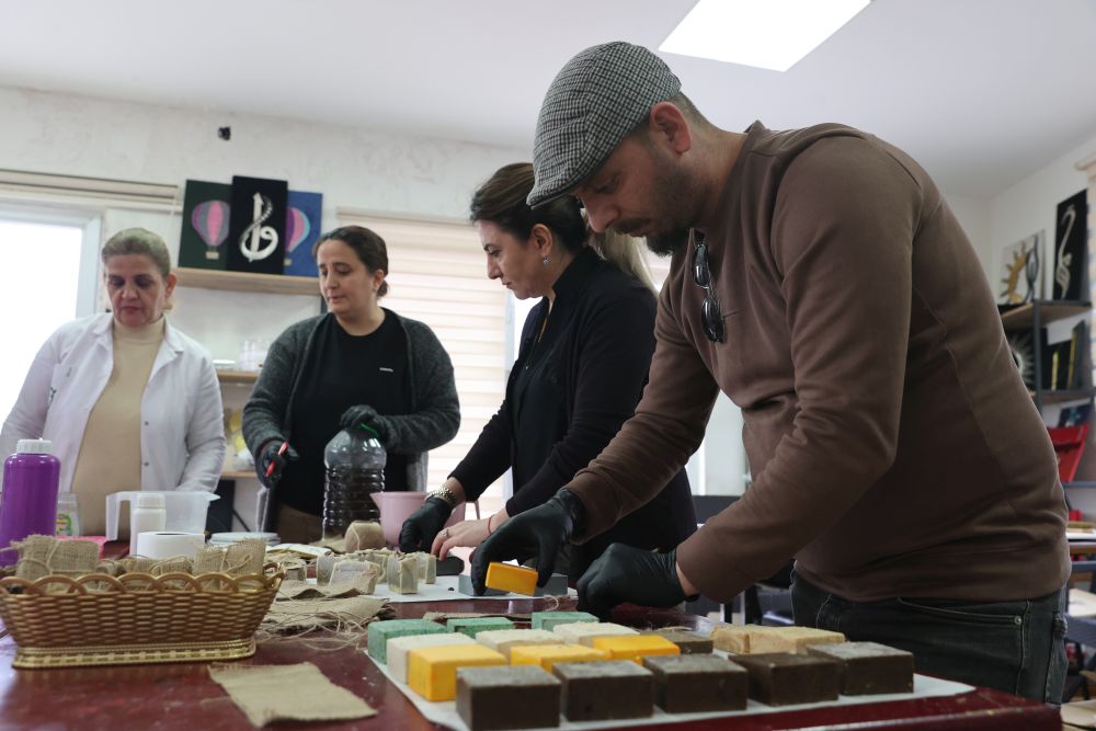Geleneksel yöntemler kullanarak saf zeytinyağı sabunları ürettiklerine işaret eden Benneyim, üretimini yaptıkları sabunlar konusunda 25 eğitimciye de eğitim verdiklerini aktardı.