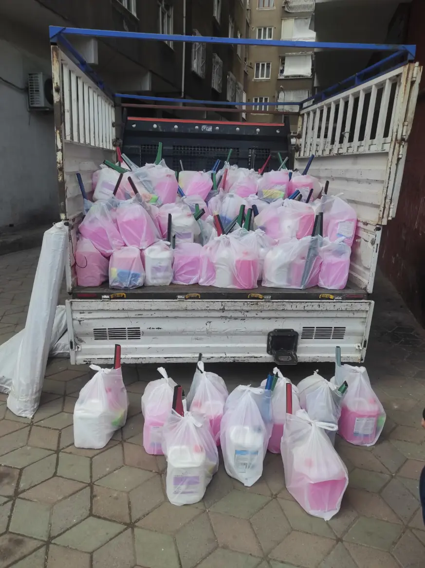 İlçede bulunan taziye evlerine, cami, mescit, Kur'an Kursu ve medreselere bayram temizliği yapılması için temizlik ürünleri dağıtıldı.
