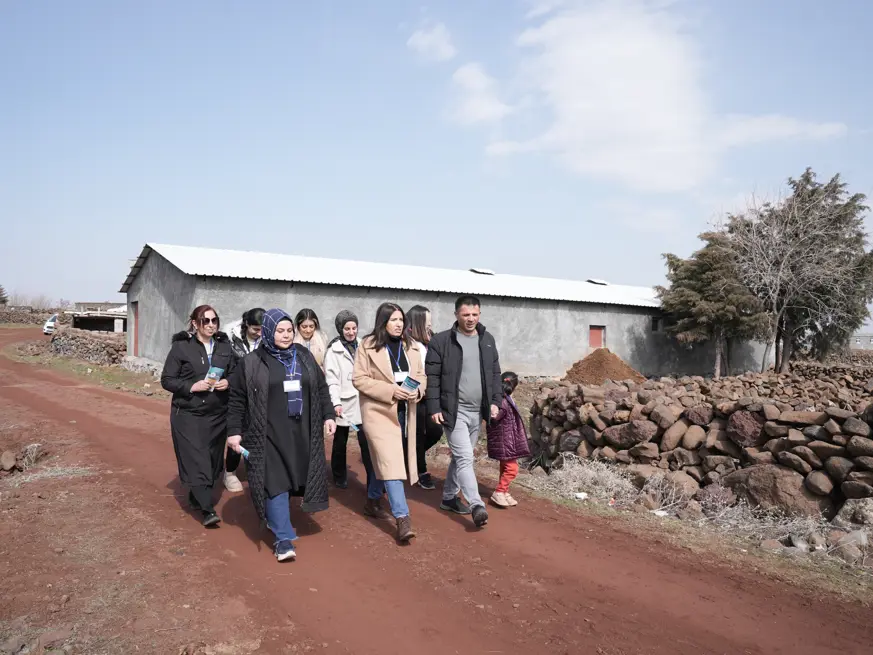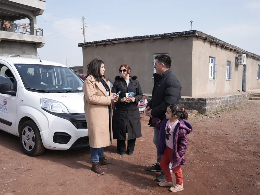 Diyarbakır'da hayata geçirilen projeyle kırsal mahalleleri gezen kadınlar, çocuk yaşta evliliklerin önüne geçmek için bilgilendirme çalışması yürütüyor.