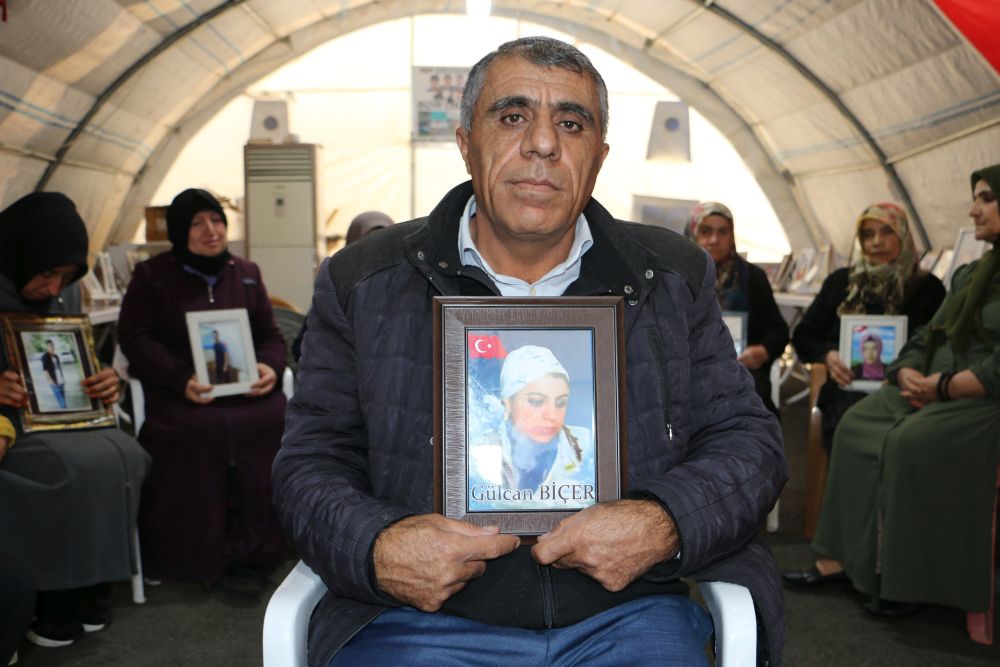 “2019 yılından beridir Diyarbakır HDP İl Başkanlığı önünde evlat nöbeti tutmaya devam ediyoruz. Buraya Türkiye'nin 4 bir yanından gelip çocuklarını isteyen aileler var. Biz buraya geldikten sonra HDP'liler partiyi kapatıp kaçtılar. Çocuklarımızı kaçıranlar HDP'nin mensuplarıydı. Onlar nereye kaçarlarsa biz onların kapısından hiçbir yere ayrılmayacağız. Allah'a şükür peyderpey çocuklarımız dağlardan geliyor, aileleriyle evlerinde yaşıyorlar. Buradan dağdaki evlatlarımıza sesleniyorum; vakit kaybetmeyip gelip güvenlik güçlerimize teslim olsunlar. Bak sizleri kaçıranların çocukları yurt dışlarında okuyup tatil yapıyor sizlerin ellerine de silah vermişler ya öl ya öldür diyorlar”