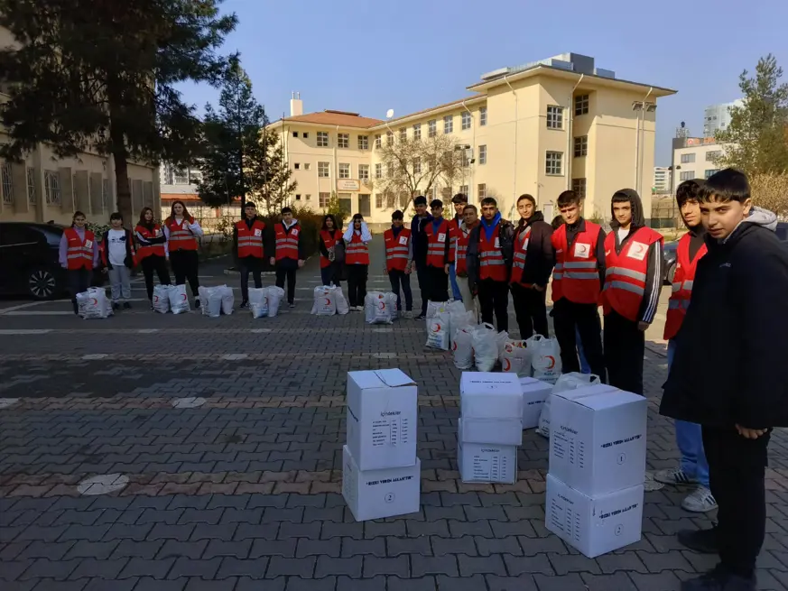 Öğrenciler, sınıflarında oluşturulan sadaka kutularına topladıkları bağışlarla Türk Kızılay Bağlar Şubesi işbirliğiyle ihtiyaç sahibi ailelere gıda kolileri hazırladı. Hazırlanan koliler, belirlenen ailelere ulaştırıldı.