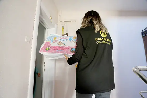 Ergani Sosyal Yardımlaşma ve Dayanışma Vakfı tarafından tespit edilen, ekonomik durumu iyi olmayan ailelere iletilen hediye paketlerinde ateş ölçerden bebek ayakkabısına kadar 15 parça ihtiyaç malzemesinin yer aldığı belirtildi.