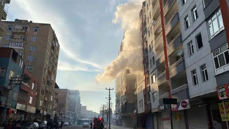 Diyarbakır'da depremde ağır hasar alan ve daha sonra boşaltılan 7 katlı Kupik Apartmanı'nın 3'üncü katında yangın çıktı. İtfaiye ekibi kısa sürede yangını söndürdü.