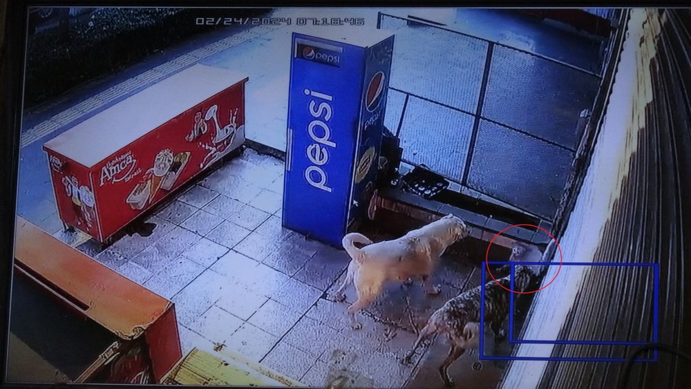 Diyarbakır’ın Kayapınar ilçesinde sokak kedisi, mama beklediği bakkalın önünde iki sokak köpeği tarafından sıkıştırılması ve oradan kurtulmaya çalışması güvenlik kamerasına yansıdı.