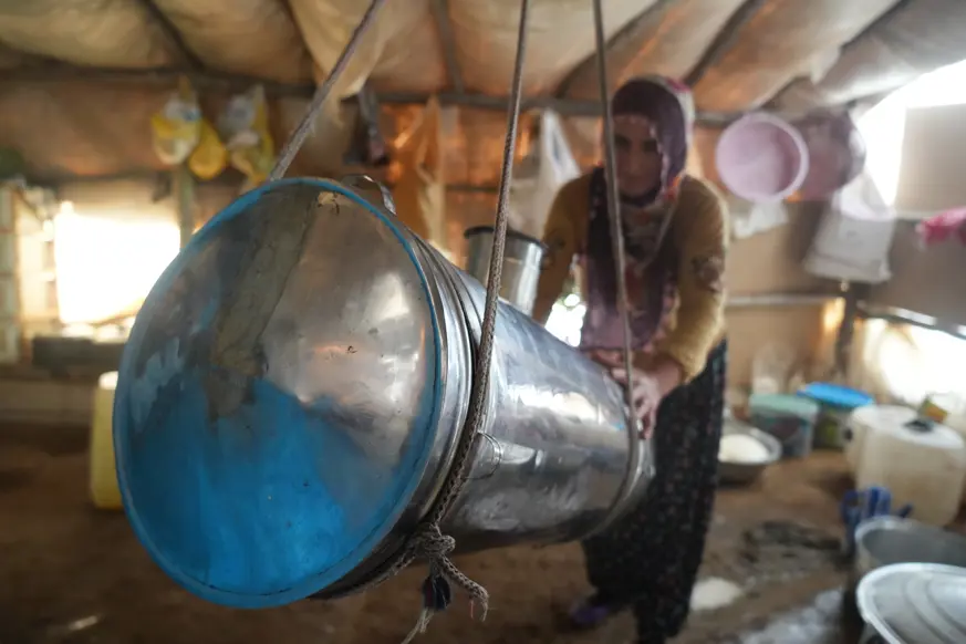 Süt sağmak ve peynir yapmak gibi işleri üstlenen kadınlar, gün boyunca hiç durmadan çalışıyor.