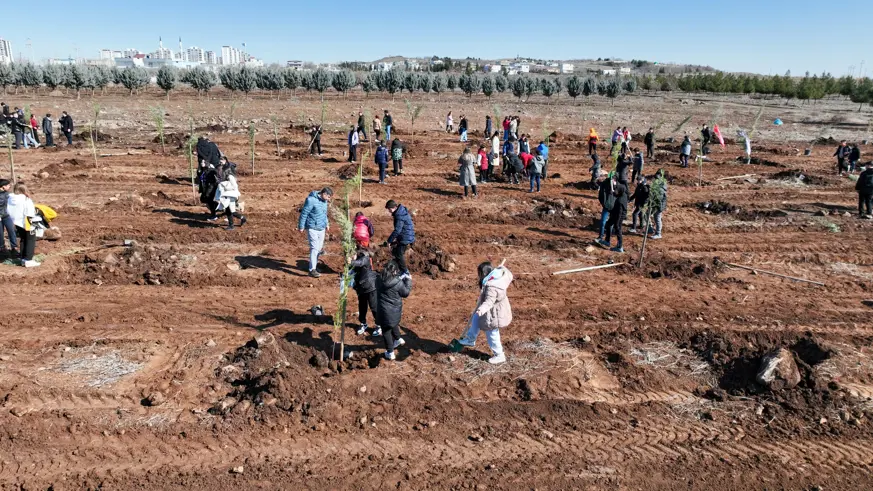 Çevre bilincinin gelişmesi hedefiyle yapılan etkinlikte öğrenciler, önceden açılan çukurlara öğretmenleri eşliğinde fidanları dikti ve ardından can suyunu verdi.