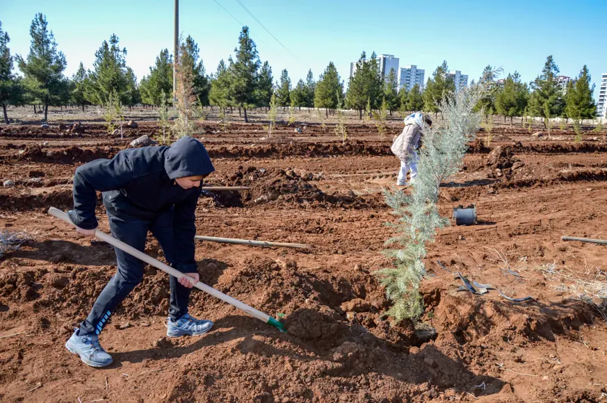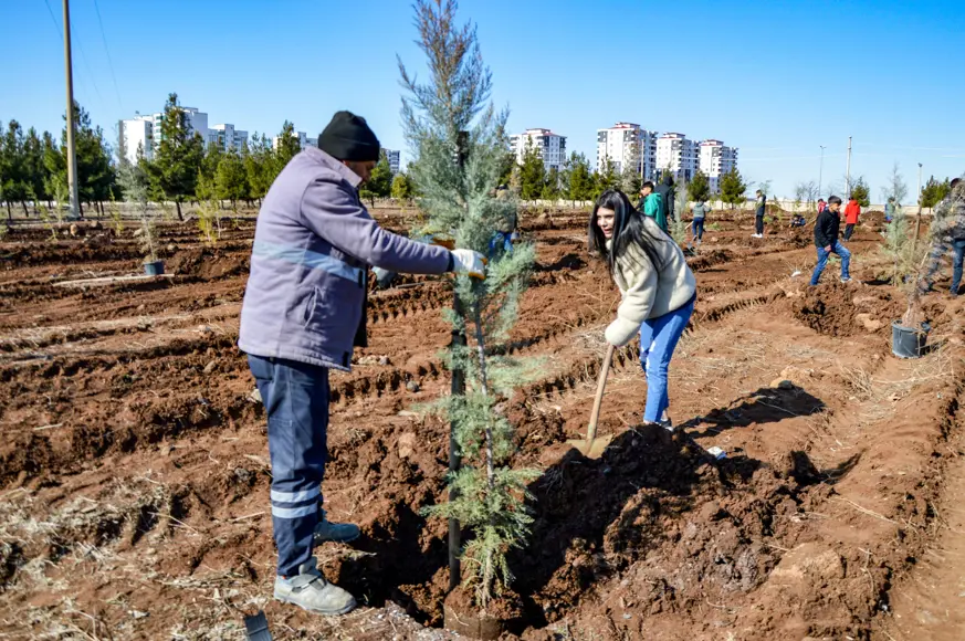 Namık Kemal Mesleki Teknik ve Anadolu Lisesi Halkla İlişkiler Bölümü öğrencileri ile bir özel okulda eğitim gören öğrenciler, Kayapınar ilçesi Fırat Bulvarı üzerinde yer alan Kent 2 Ormanlık Alanına 135 adet İran çamı ile mavi selvi fidanı dikti.