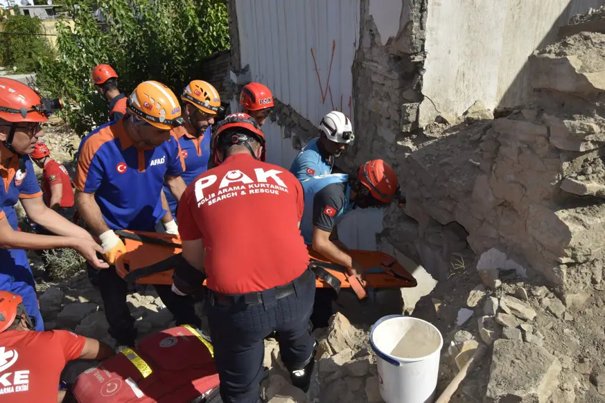 Titiz bir şekilde yapılan arama kurtarma çalışmaları sonucunda senaryo gereği enkaz altında kalan 1 yaralıya ulaşıldı, yaralıya ilk müdahale 112 acil sağlık personelince yapıldıktan sonra kurtarma ekiplerinin desteğiyle sedyeye alınarak tedavi için hastaneye götürülmek üzere ambulansa götürüldü.