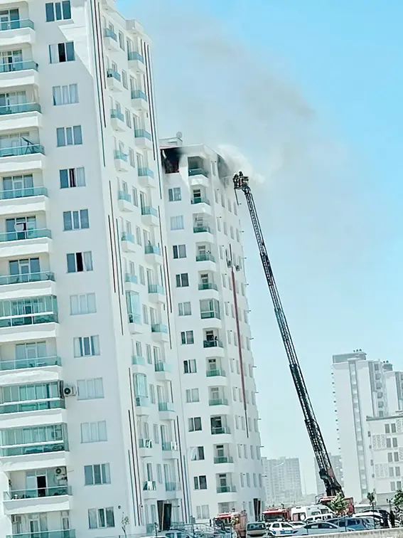 Yangın, öğle saatlerinde Talaytepe Mahallesi'ndeki bir sitede çıktı. 13 katlı binanın son katından yükselen alevleri görenler, durumu 112 Acil Çağrı Merkezi'ne bildirdi. Olay yerine itfaiye, sağlık ve polis ekipleri sevk edildi. Ekipşer, merdivenli araçla aralarında çocukların da bulunduğu bir aileyi kurtardı. E