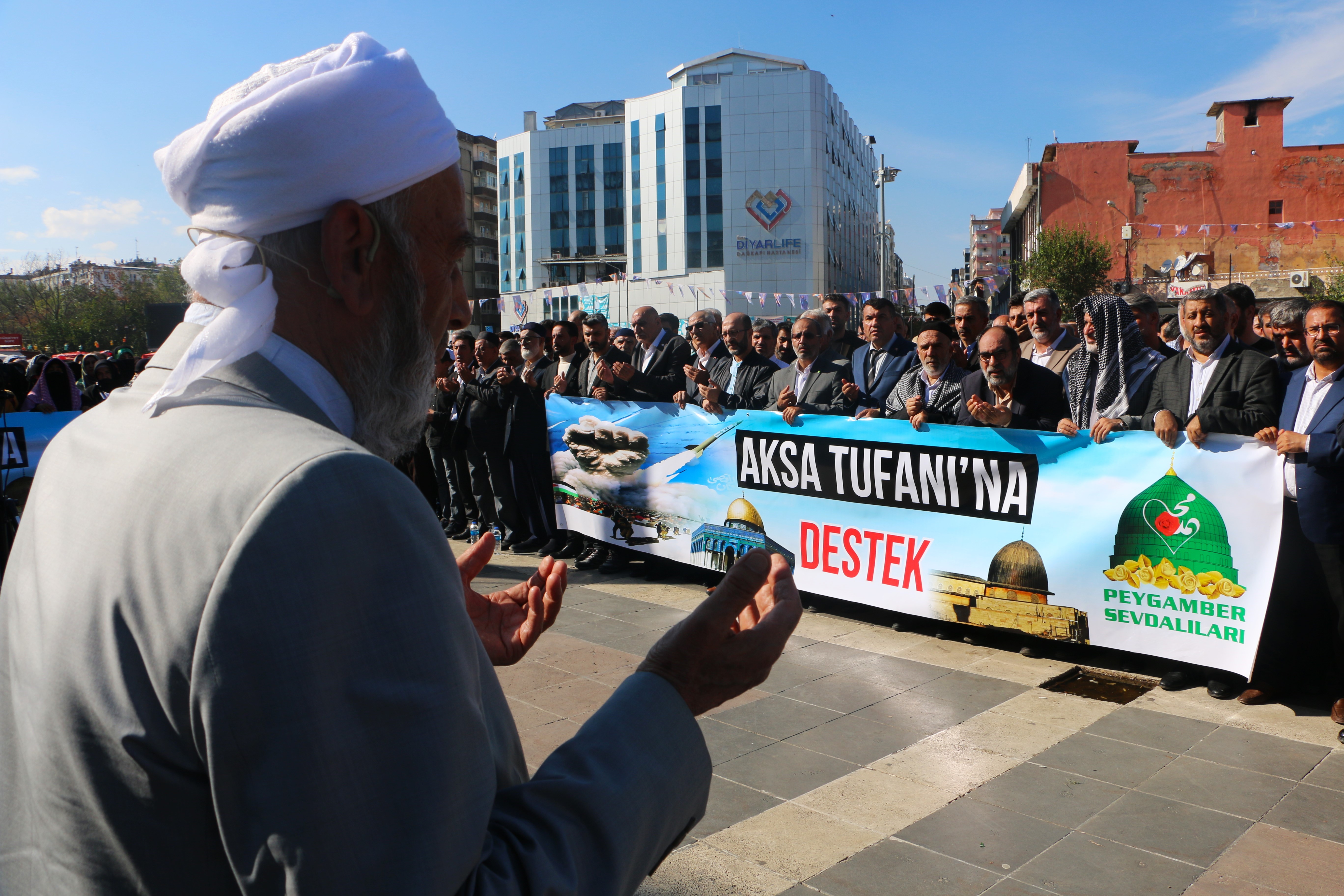 İsrail'in Gazze'ye düzenlediği saldırıları kınamak ve Filistin halkına destek vermek amacıyla Diyarbakır Peygamber Sevdalıları Vakfı tarafından yürüyüş gerçekleştirildi. Yenişehir ilçesindeki Selahaddin-i Eyyubi Camii'nde cuma namazı sonrasında başlayan yürüyüş, Dağkapı Meydanı'nda son buldu.
