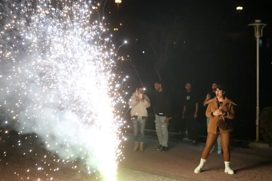 Kentte ateşlenen havai fişekler ve patlayıcı maddeler gökyüzünü duman bulutuyla kaplandı. Hemen her sokak ve caddede kullanılan havai fişekler ve patlayıcı maddeler nedeniyle kentin havası barut kokusuyla doldu.