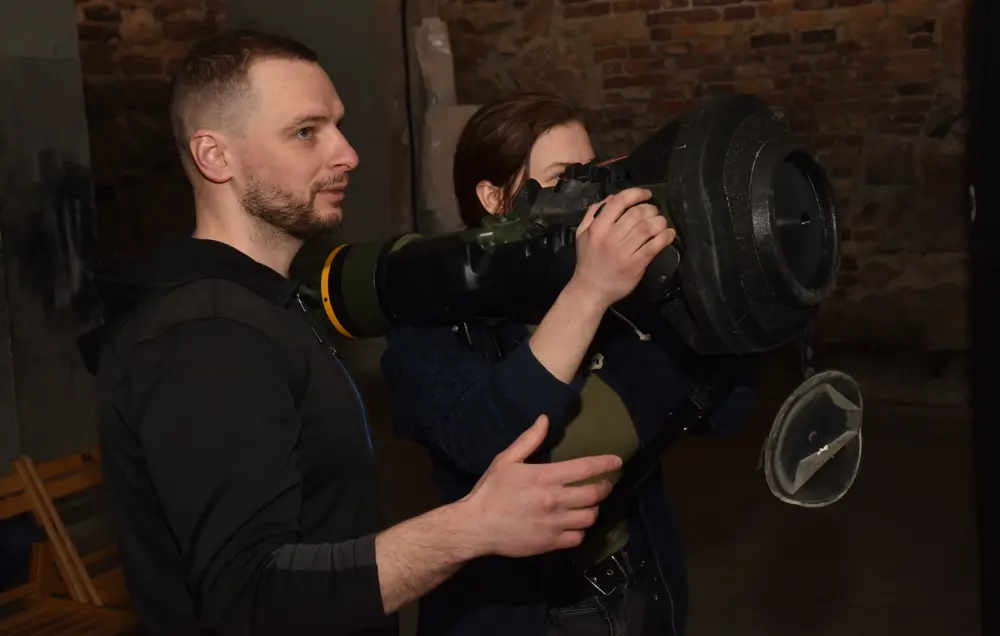 Ukrayna'nın Lviv kentinde siviller için askeri eğitimler düzenleniyor. NLAW kısa menzilli tanksavar füzelerinin kullanımı üzerine verilen askeri eğitime çok sayıda vatandaş katıldı.