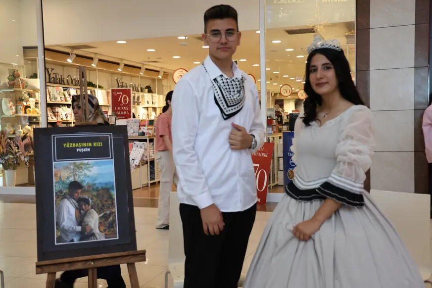 “Eylül ayında edebiyat öğretmenimizin desteğiyle kitap okumaya başladık. İlkönce kitaplarımızı okuduk ve o kitabın filmini izledik. Daha sonra kitaptaki karakterlerin tahlilini çıkardık. Sonrasında o karakteri canlandırmaya çalıştık. Kostümleri hepsini kendimiz tasarladık.”