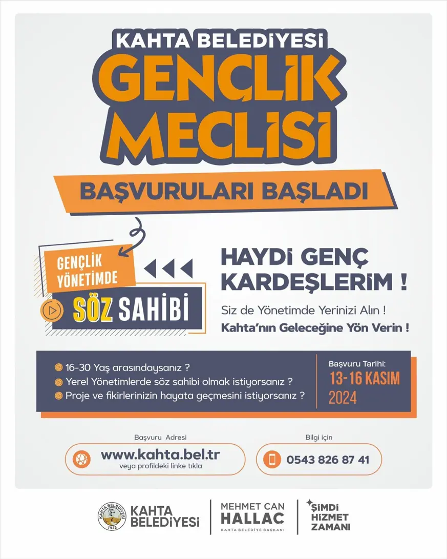 Kahta Belediye Başkanı Hallaç konuyla ilgili yaptığı açıklamada, “Gençlik Meclisi; Kahta'da yaşayan gençlerin fikirlerini ve önerilerini dikkate alarak, onların ilçedeki yaşam deneyimlerini iyileştirmek üzere çalışmalar üreten bir genç katılım platformudur. Meclis; şeffaf, katılımcı, çeşitli, yenilikçi ve sürdürülebilirlik ilkelerine bağlı kalarak, gençlerin katılımını artırmak ve onları karar alma süreçlerine dahil etmek için çalışır. Kahta Gençlik Meclisi; Dil, din, ırk, renk, cinsiyet, düşünce ve benzeri hiçbir ayrım yapmadan ve ortak akla dayanan uzlaşıyı esas almak suretiyle Kahta'nın sürdürülebilir gelişmesinin temelini oluşturacak gençlik politikalarının oluşturulmasını ve geliştirilmesini, - Kahtalı gençlerin ilçeye dair sorunlarının önceliklendirilerek çözüm önerileri üretilmesini amaçlayan, yerellik ilkesine ve gönüllülük esasına dayalı olarak kurulan katılım platformu olacaktır.