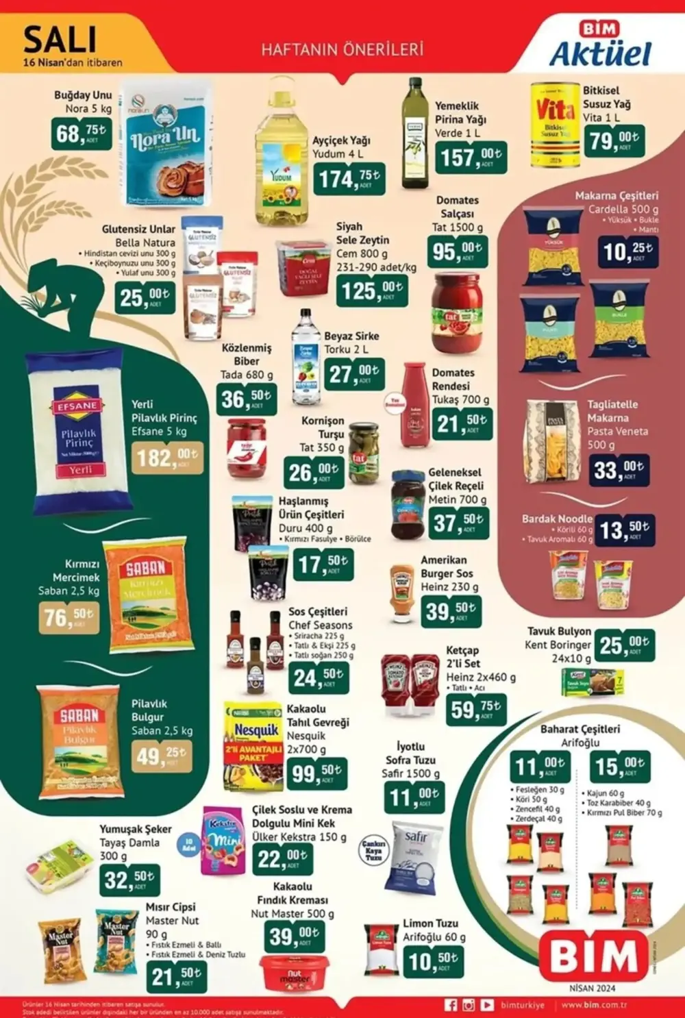 BİM zincir marketlerinden bayram ettiren bir indirim kampanyası geldi. 16 Nisan indirim kataloğu yayınlayan BİM, 4 litre Yudum 4 ayçiçek yağını 174 TL’den 5 kg pilavlık pirinci 182’den, 5 kg yarım yağlı yoğurdu ise 139 TL’den satmaya başlayacak.