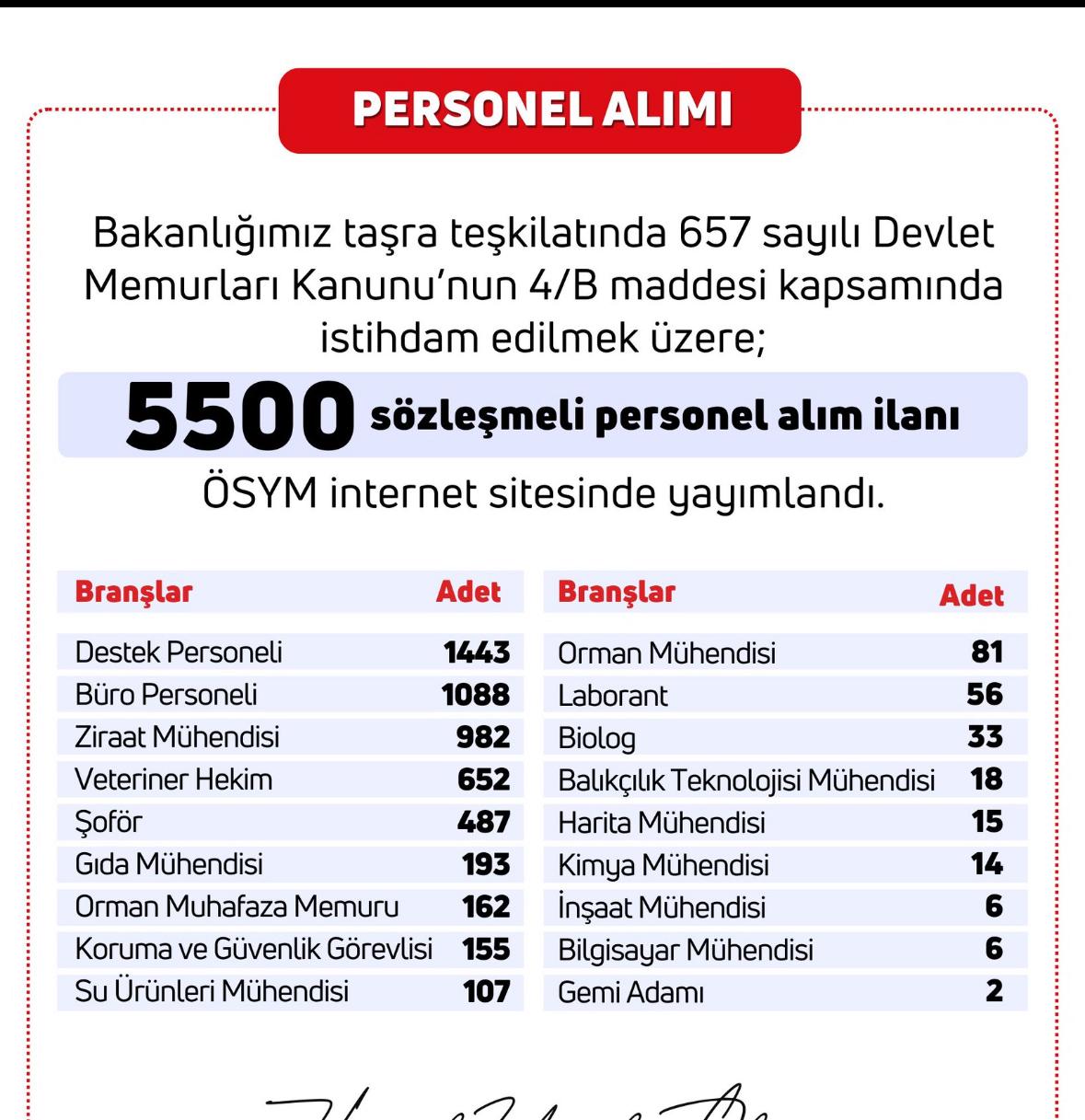 Bakan Yumaklı, bir çok kurum ve birimde 5500 personel alımı yapılacağını duyurdu.