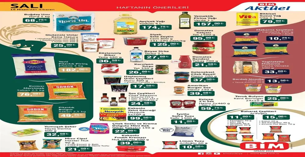 Türkiye’nin önde gelen zincir marketlerinden BİM, 16 Nisan’dan itibaren geçerli olacak yeni aktüel kataloğunu yayınladı. Bu katalogda tüketicileri sevindirecek birçok indirim bulunuyor. İşte BİM’de 16 Nisan’da sunulan bazı fırsatlar…