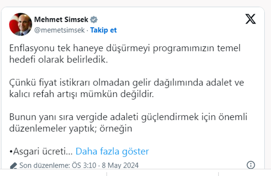 Bakan Şimşek'in yayınladığı mesajda şu ifadeler yer aldı: