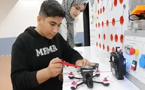 Adıyaman'dan, 6 Şubat'taki depremin ardından ailesiyle Elazığ'a gelen 15 yaşındaki Yuşa Tunahan Meriç, depremde kaybettiği öğretmeni anısına güneş panelli dron yaptı.