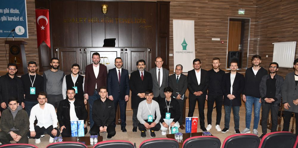 Söyleşiye Rektör Prof. Dr. Mehmet Karakoç, Hukuk Fakültesi Dekanı Prof. Dr. Hasan Tarıverdi, akademik, idari personel ile öğrenciler katıldı.