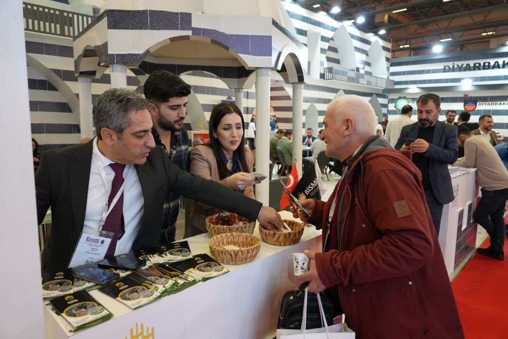 İlgi gören Diyarbakır standında kentin ünlü burma kadayıfı sergileniyor, ziyaretçilere tanıtım materyalleri dağıtılıyor, stantta kurulan ekranda Diyarbakır'ın tanıtım videoları gösteriliyor.