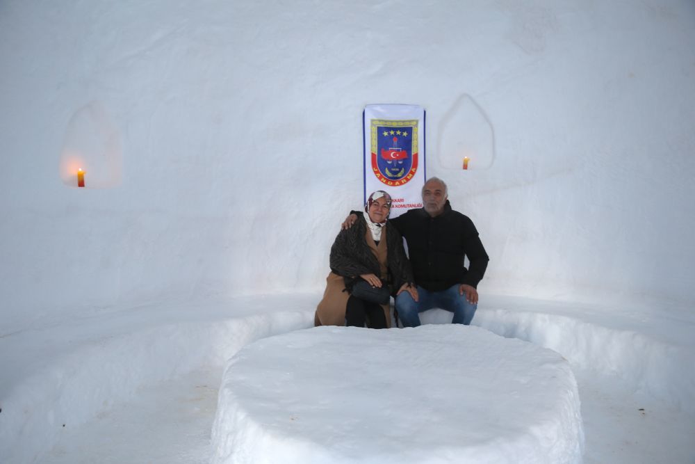 Hakkari'de, jandarma personelinin Merga Bütan Kayak Merkezi'nde yaptığı iglolar (kardan ev) vatandaşların ilgi odağı oldu.