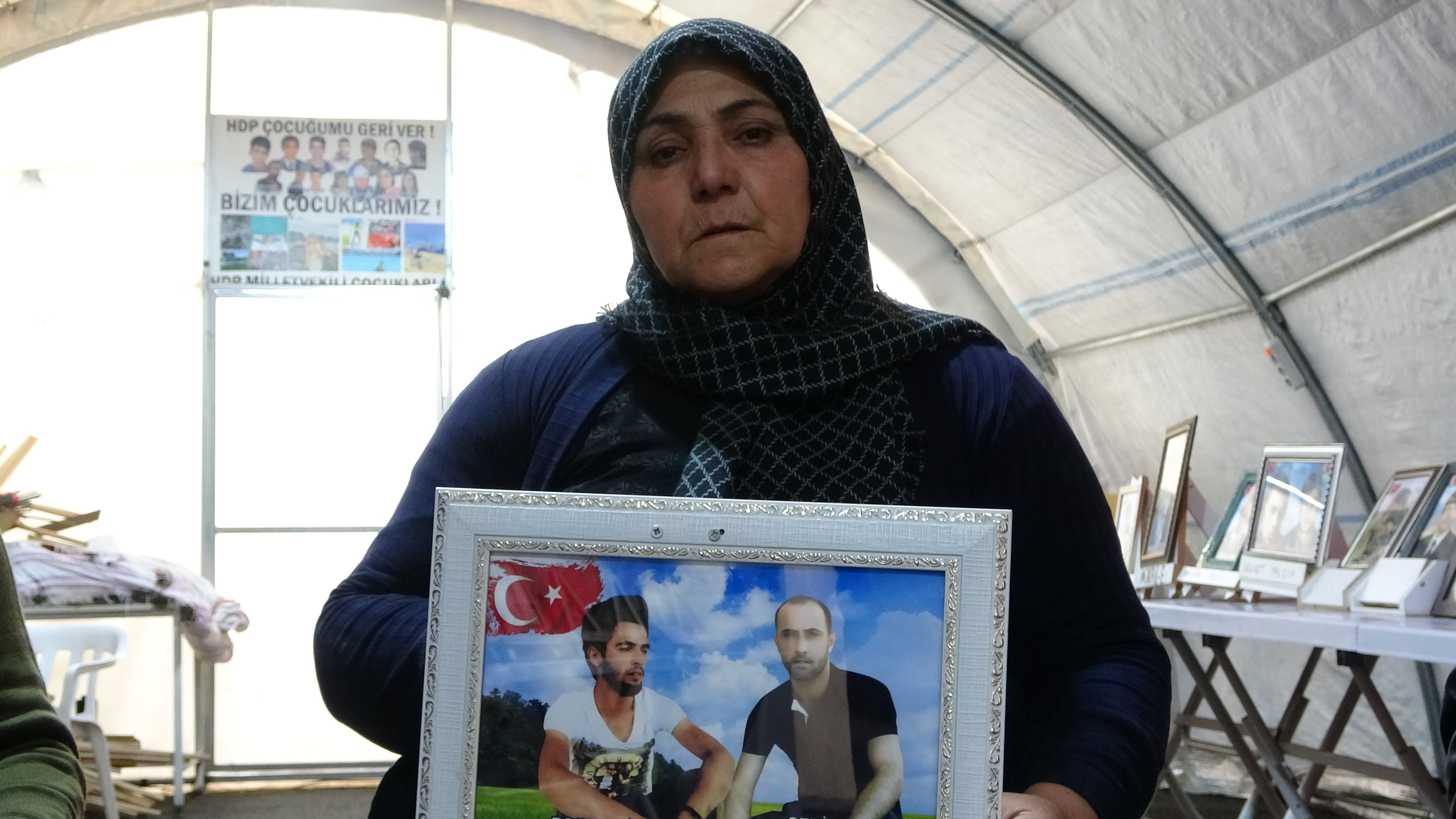 “Yaklaşık 5 yıldır burada evlat mücadelesi veriyorum. Çocuğum 15 yaşındayken HDP’liler tarafından kandırıldı. Evladım yaklaşık 8 yıldır terör örgütü PKK’nın elinde. Ben burada evladımı istiyorum. Benim evladımı HDP terör örgütüne gönderdi. Evladımı HDP ve PKK’dan almadan asla buradan kalkmayacağım. Yağmur çamur demedik, pandemide bile evlat mücadelemize devam ettik. Evlat acısı çok zor. Şu an terör örgütü PKK’nın İsrail’den bir farkı yok. İsrail’de çocuk katlediyor, terör örgütü PKK’da çocuk katlediyor”