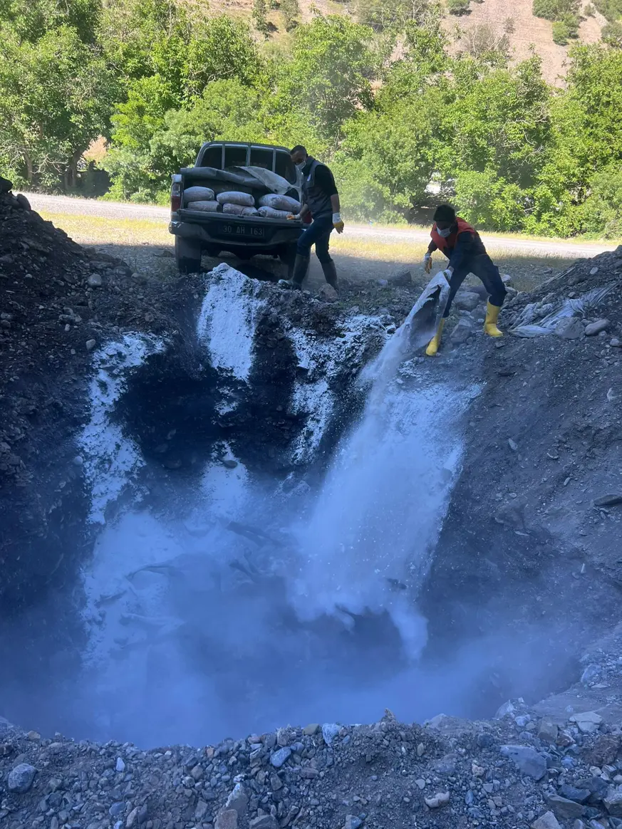 İtfaiye Müdürlüğü yetkilileri, Üzümcü köyü yakınında meydana gelen trafik kazasında sıkışan ve telef olan küçükbaş hayvanların kireçlenerek gömüldüğünü belirttiler.