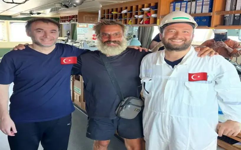 Gemide Türk denizcilerle poz veren Fransız maceracının ilk isteği ise asitli içecek oldu. 137 gün boyunca okyanusta olduğu öğrenilen Fransız adam, gemiden U.S. Customs and Border Protection ABD Gümrük ve Sınır Güvenliği ekipleriyle birlikte ayrıldı.