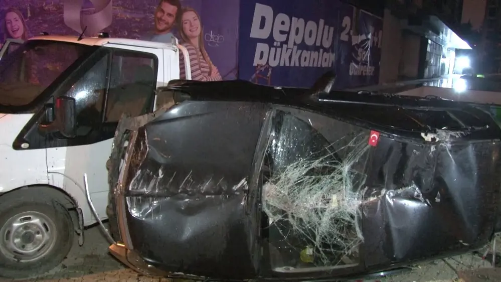 Otomobil savrularak önce otobüs durağına, ardından takla atıp bir binanın bahçesinde park halindeki kamyonete çarptı. Otobüs durağında servis bekleyen bir vatandaş kaza yapan otomobilin altında kalmaktan son anda kurtuldu.