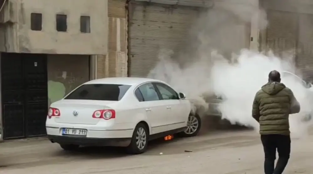 Şanlıurfa'da park halindeki otomobil henüz bilinmeyen bir nedenden dolayı cayır cayır yandı.