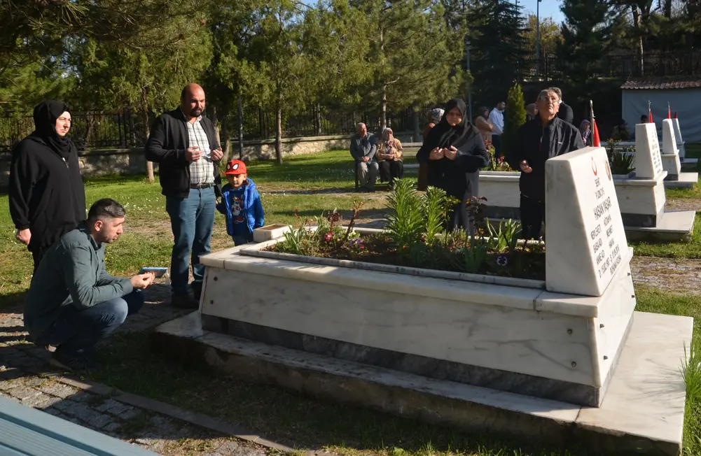 Kütahya’da şehit yakınları ve gaziler, Ramazan Bayramı arifesinde askeri şehitlikleri ziyaret etti. Hava ve Polis Şehitliği’ne gelen şehit aileleri ve gaziler, Türk bayraklarıyla donatılmış kabirlerin bakımlarını yaptı, Kur'an-ı Kerim okudu ve dua etti.