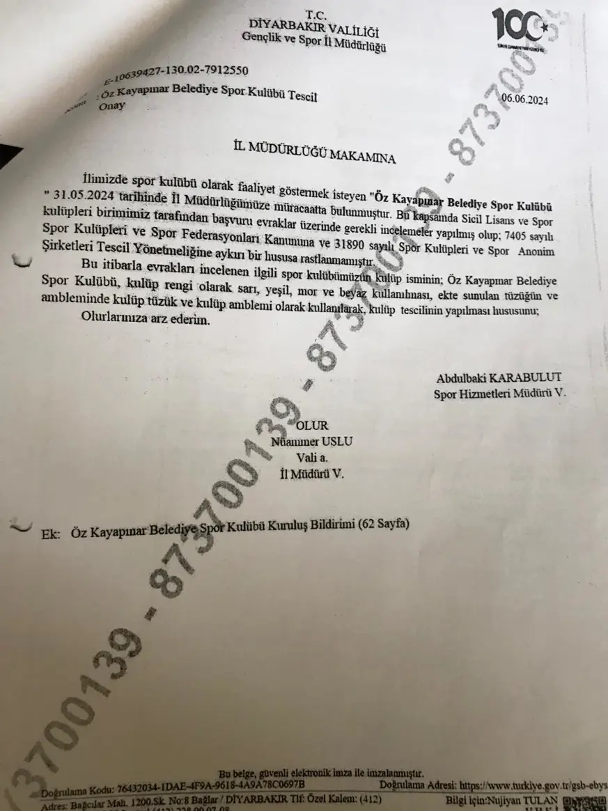 Mayıs ayında Öz Kayapınar Belediyespor ismiyle yeni bir spor kulübü kuruldu. 1 ay sonra tescili yapılan kulübe belediye meclis kararıyla 5 milyon TL kaynak aktarıldı. Kayapınar Belediyespor adını ve uzun yıllardır belediye bünyesinde faal olan kulübün dışında, bu isimle yeni bir kulüp kurulmasi kafa karıştırdı.